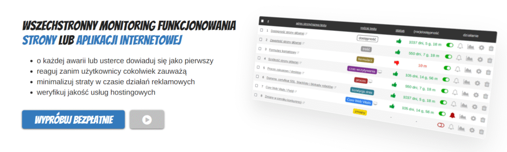 Cel jest zawsze taki sam – zorientować się jak najszybciej, że coś na stronie nie działa. A najlepiej jest, jak zorientujesz się zanim zrobią to użytkownicy.
